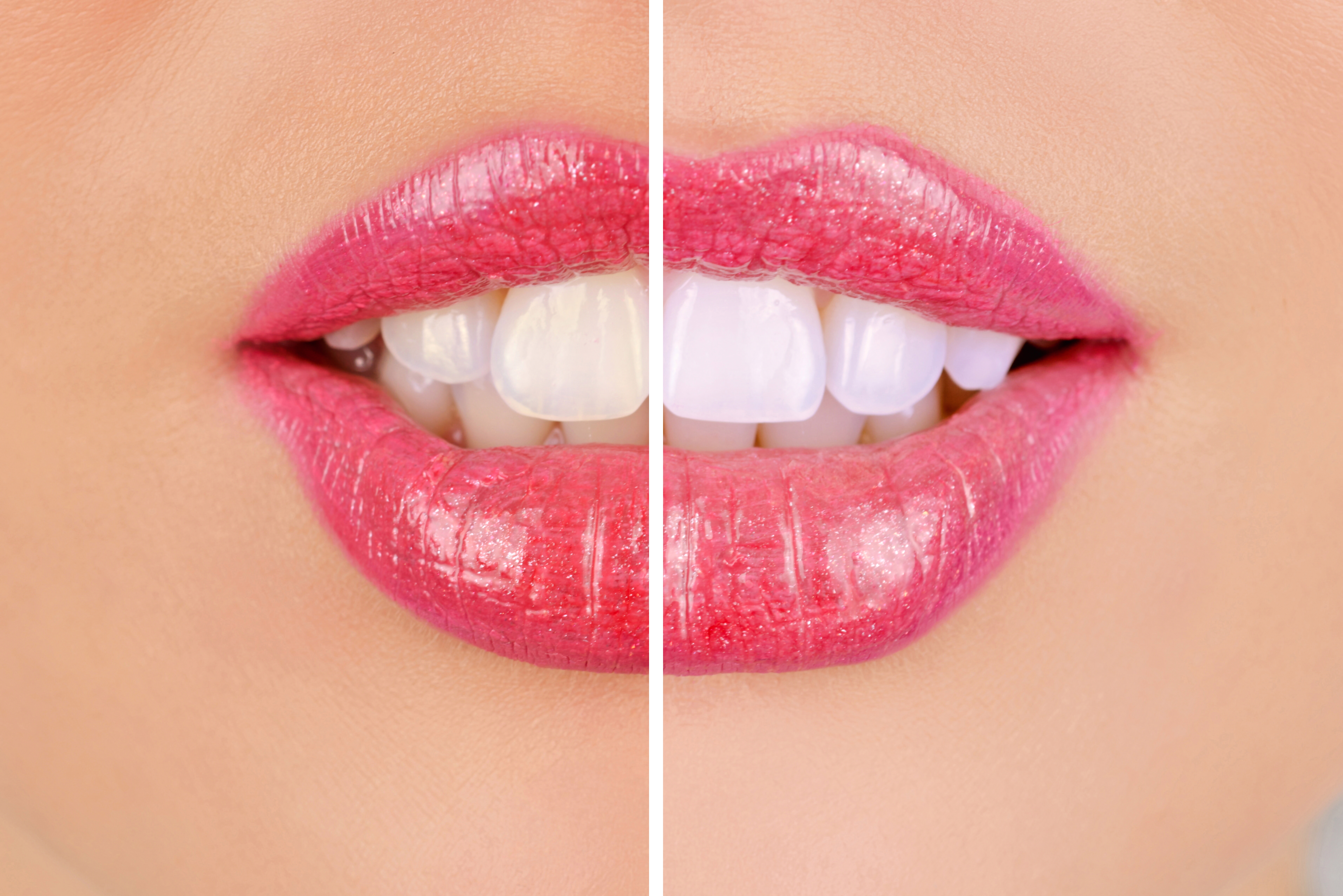 Whitening uses chemicals that permeate the surface of enamel to bleach it. Home bleaching is the least effective, while light assisted whitening achieves the most dramatic results. Regression to the original shade is fastest if home bleaching kits are used. In-office light assisted whitened teeth are lighter for a longer period of time. Usually, home and professionally administered kits require several applications, while the light assisted method requires one visit. Following any whitening procedure, there may be some transient sensitivity of teeth. This can be managed using a mild pain killer.